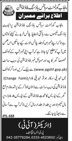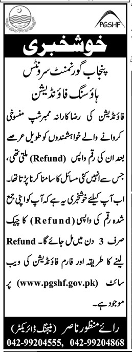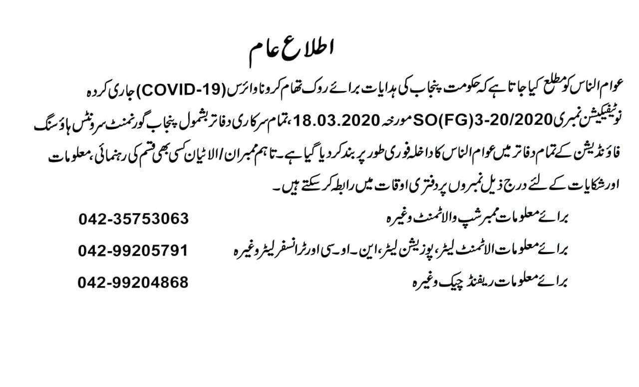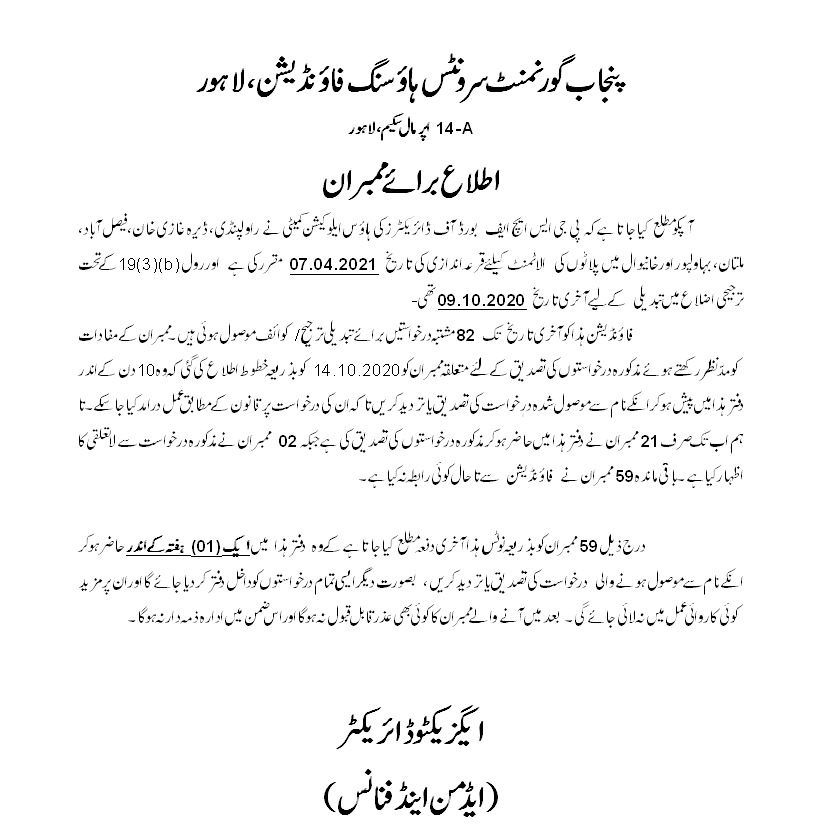 Members can contribute more than this minimum amount and are advised to do so, so that there is minimum financial burden at the time of delivery of house/plot when full cost has to be paid. Retired members are also advised to continue paying through Bank Draft / Pay Order in the name of Punjab Government Servants Housing Fund.