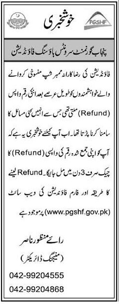 members are requested to contact PGSHF office for provision of requisite