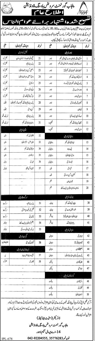 Schemes / Developers” through Punjab Government Servant Housing Foundation