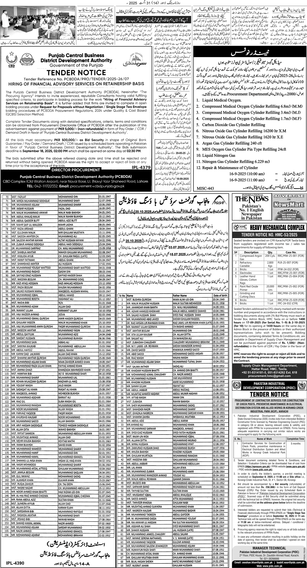 JANG Newspaper on 31.08.2025 with request to provide requisite service