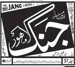 in daily newspapers Jang, Express & City 42