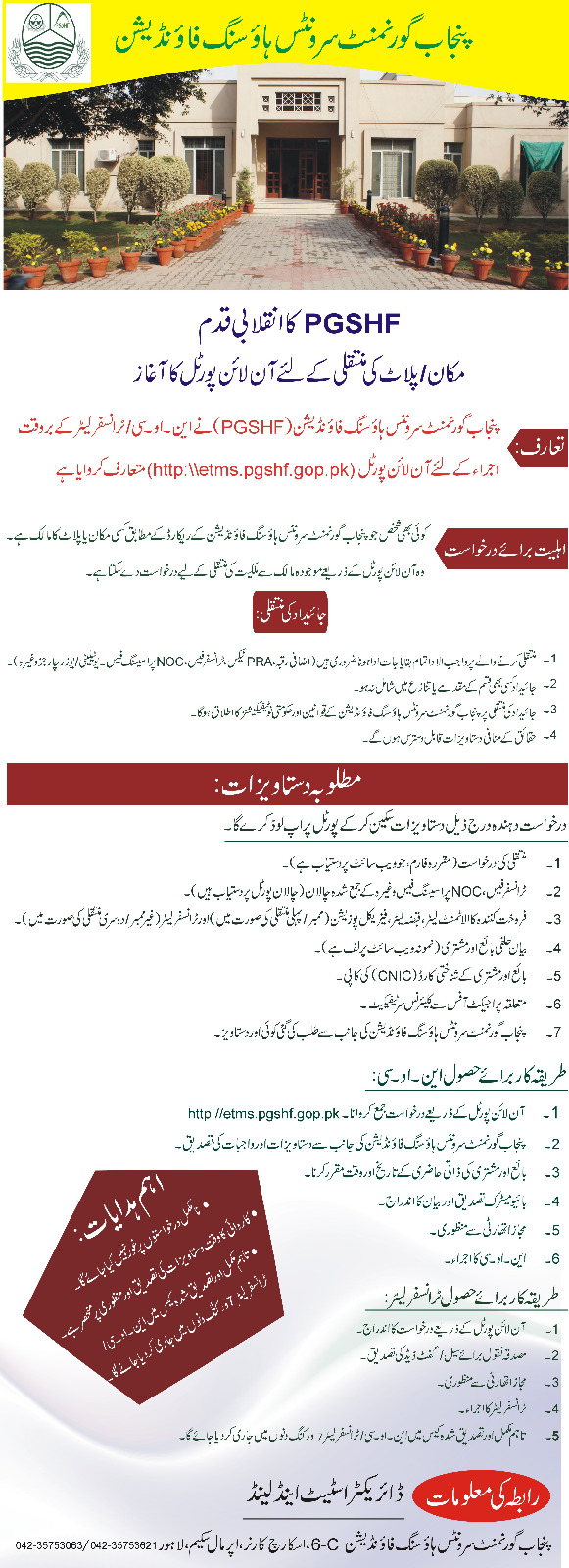 Punjab Government Servants Housing Foundation (PGSHF) has been shifted