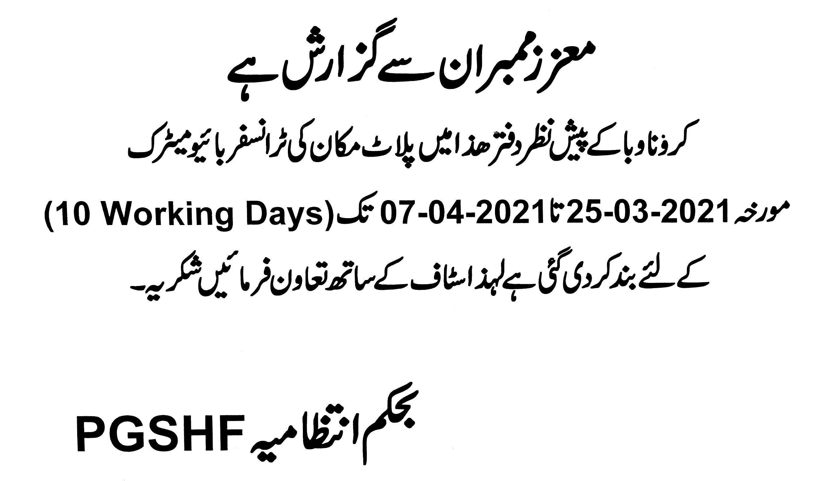 Punjab Government Servants Housing Foundation (PGSHF) has been shifted